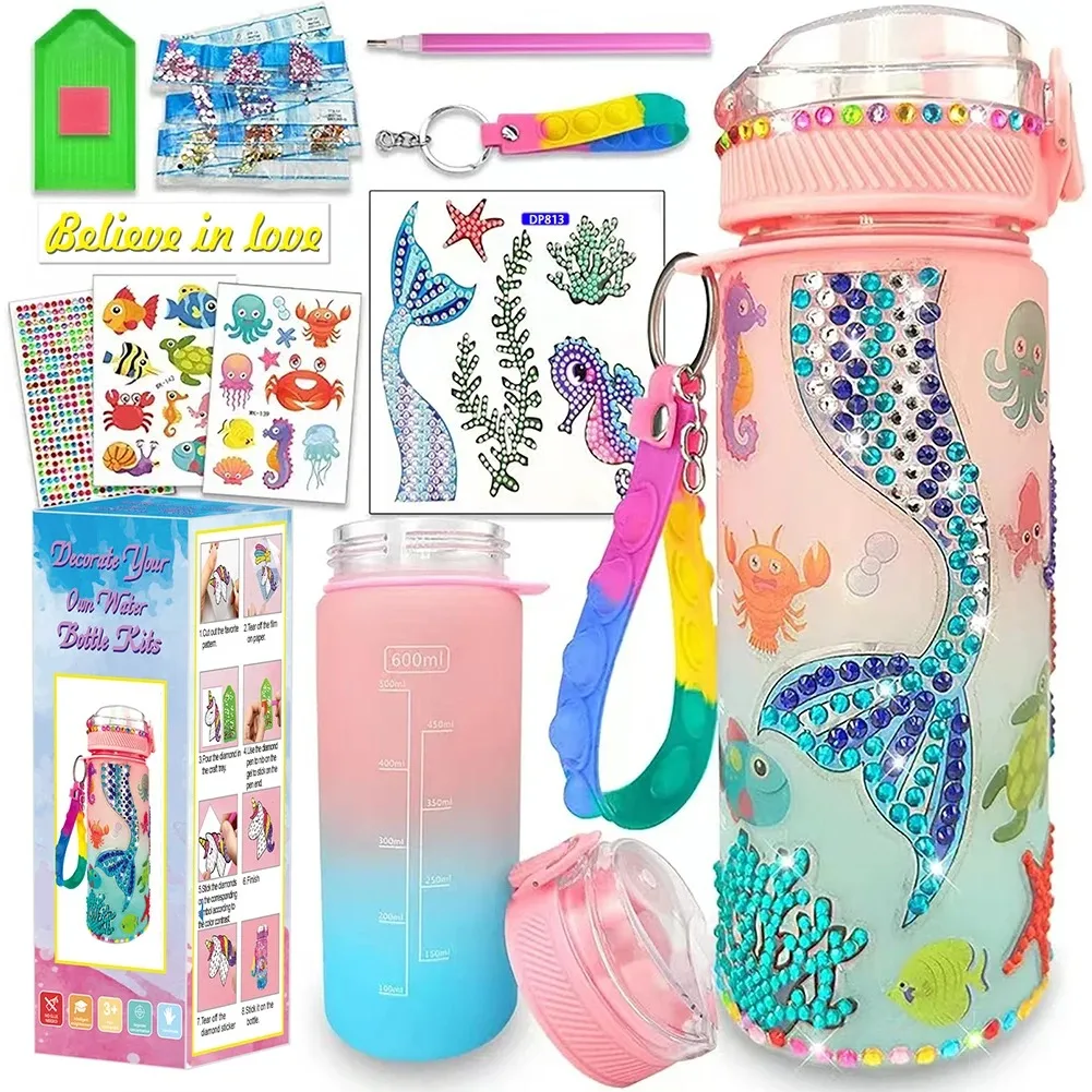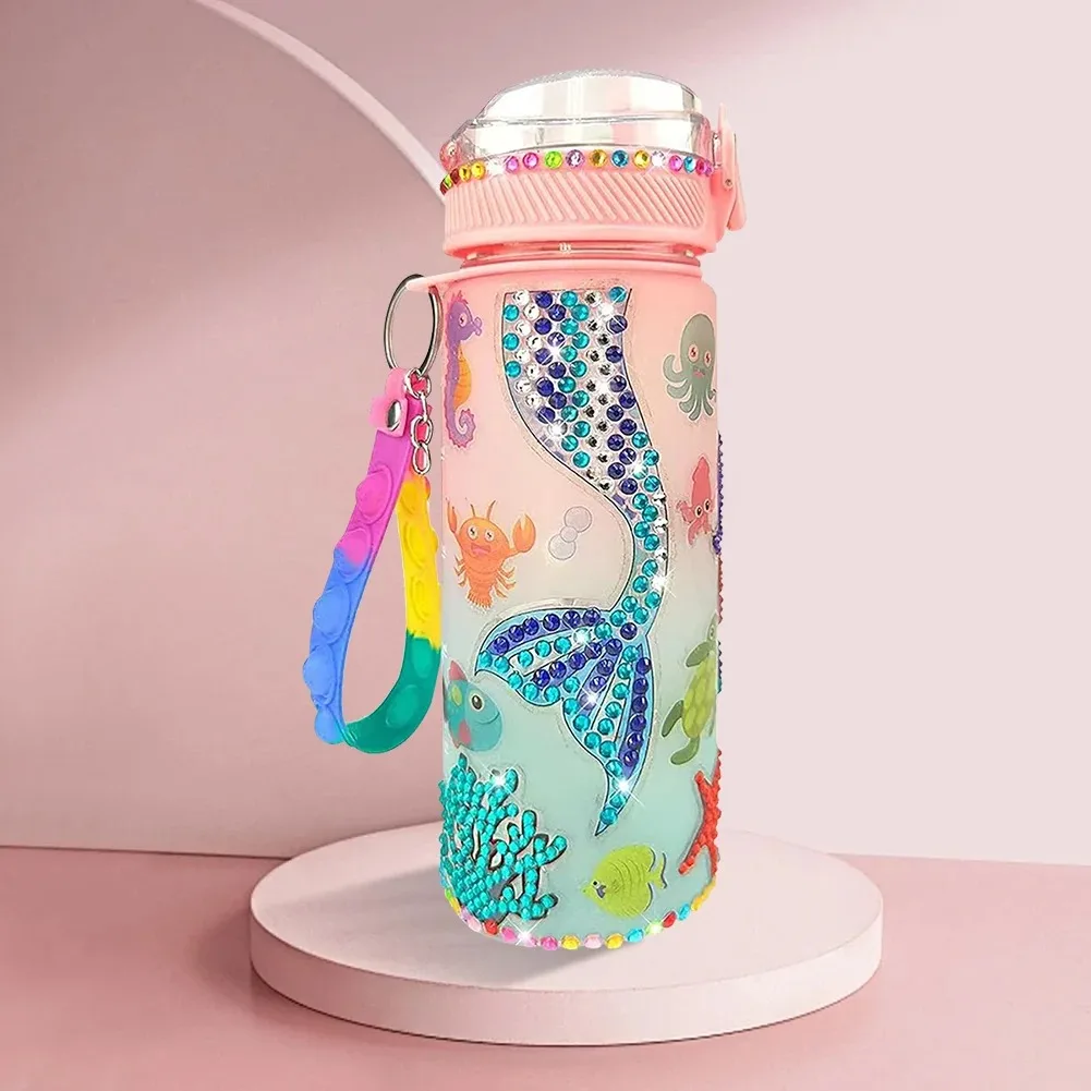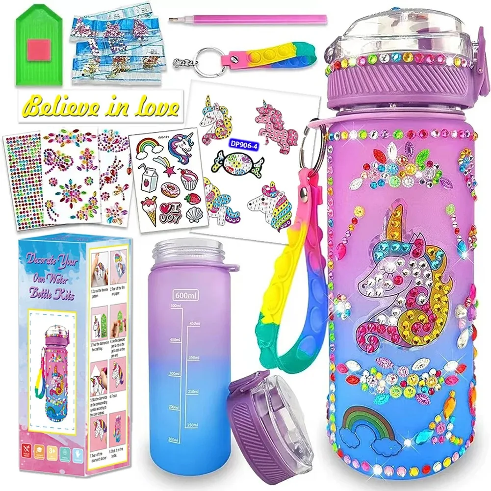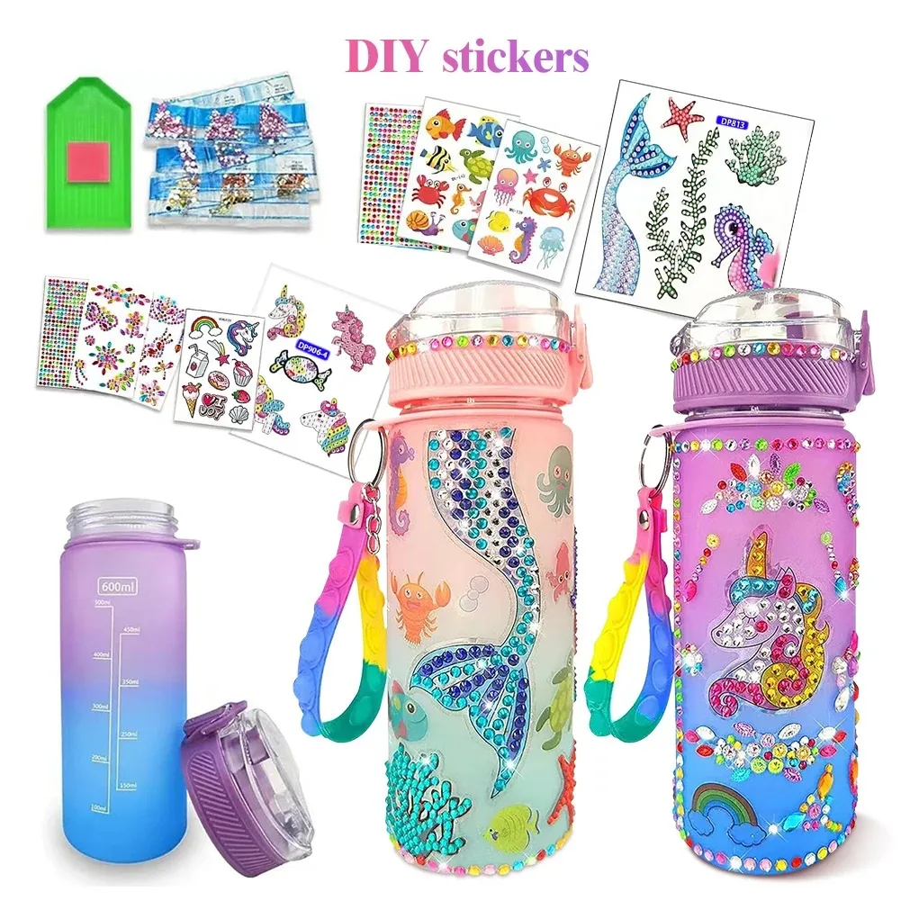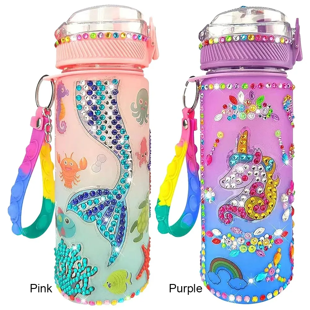 600ml DIY Kids Glitter Diamond Decorate Water Bottle