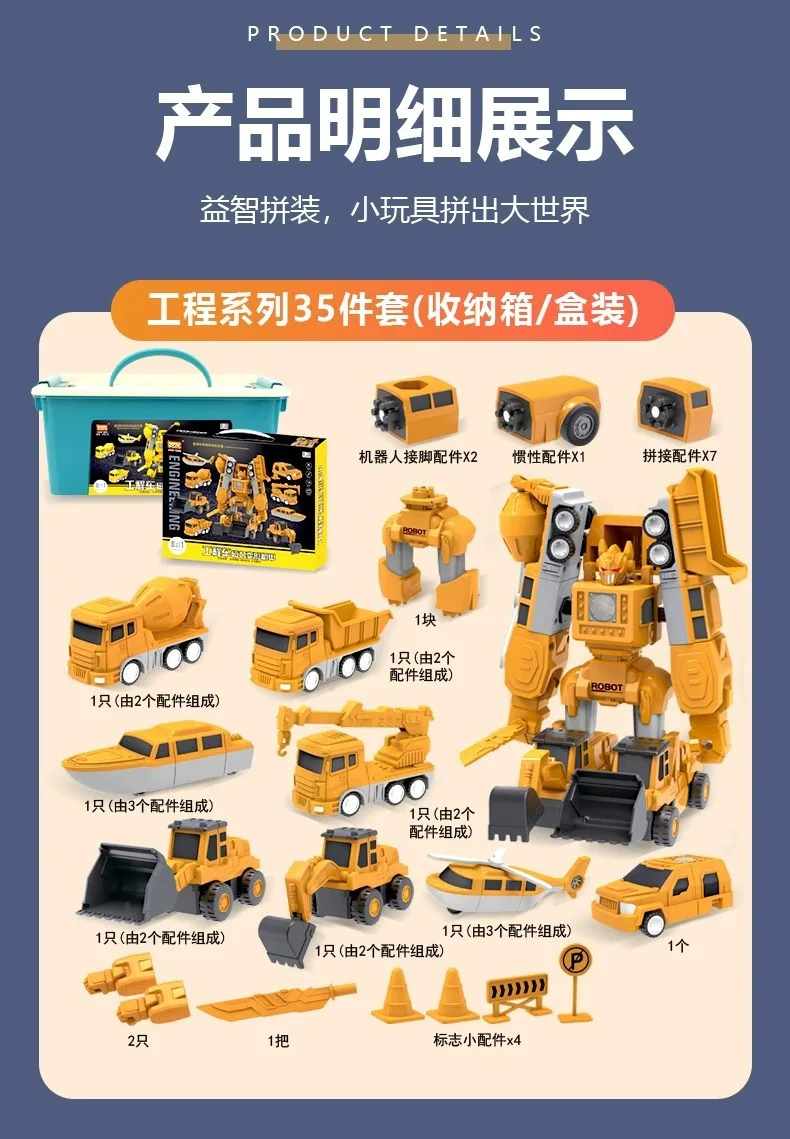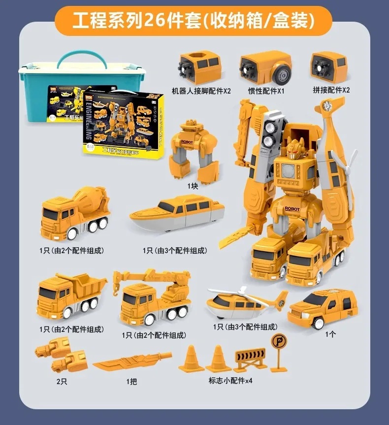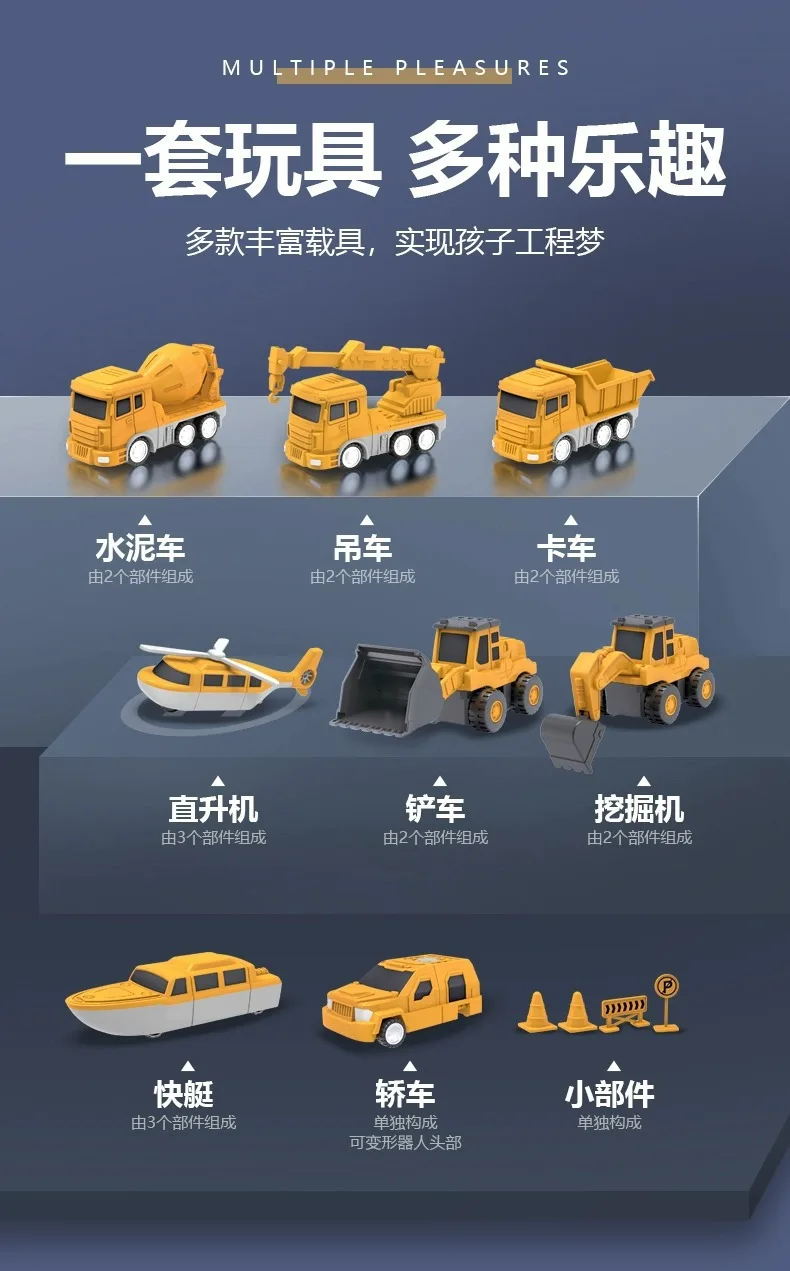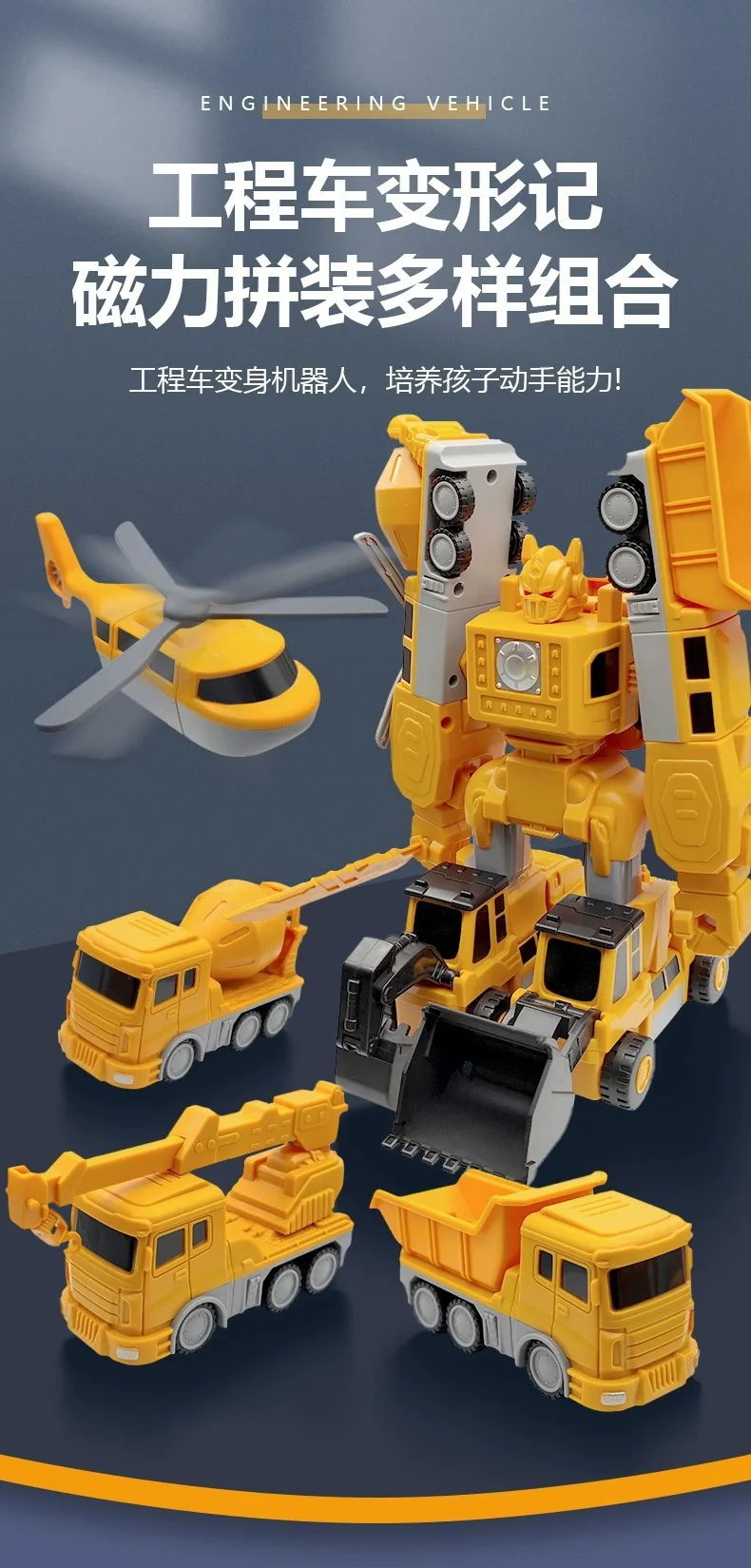 Magnetic building blocks car assembled engineering car robot deformation children's toys engineering set series military model